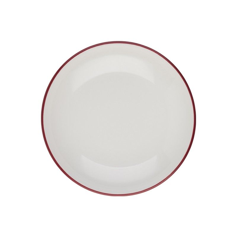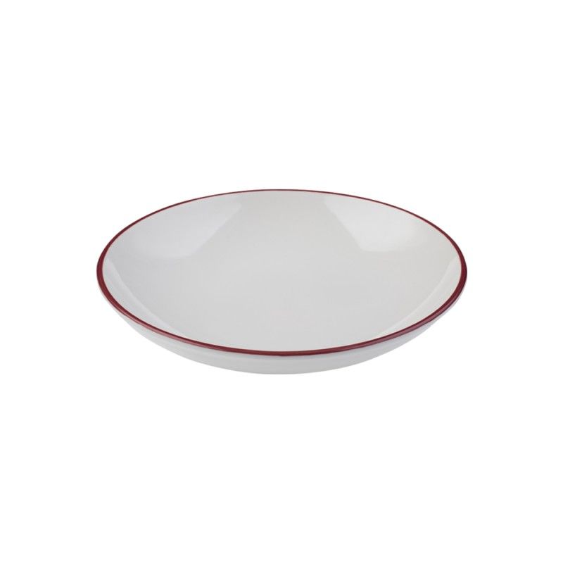 Глубокая фарфоровая тарелка 25см, объём 1140мл подходит для подачи салата, вторых блюд, пасты и дессерта. Тарелка белая с красной каймой, она выполнена из профессионального ресторанного фарфора от бренда ID Fine. Отличается прочностью и лёгко штабелируется. Практичное и стильное решение для кафе, ресторанов и гостиниц. Входит в базовую коллекцию Modest. Пожизненная гарантия от сколов.