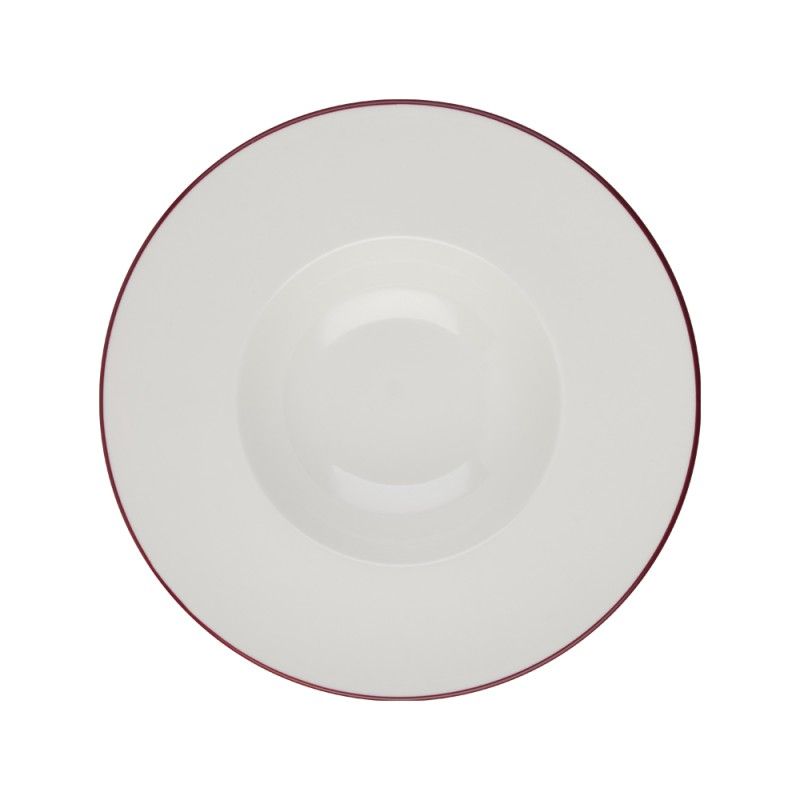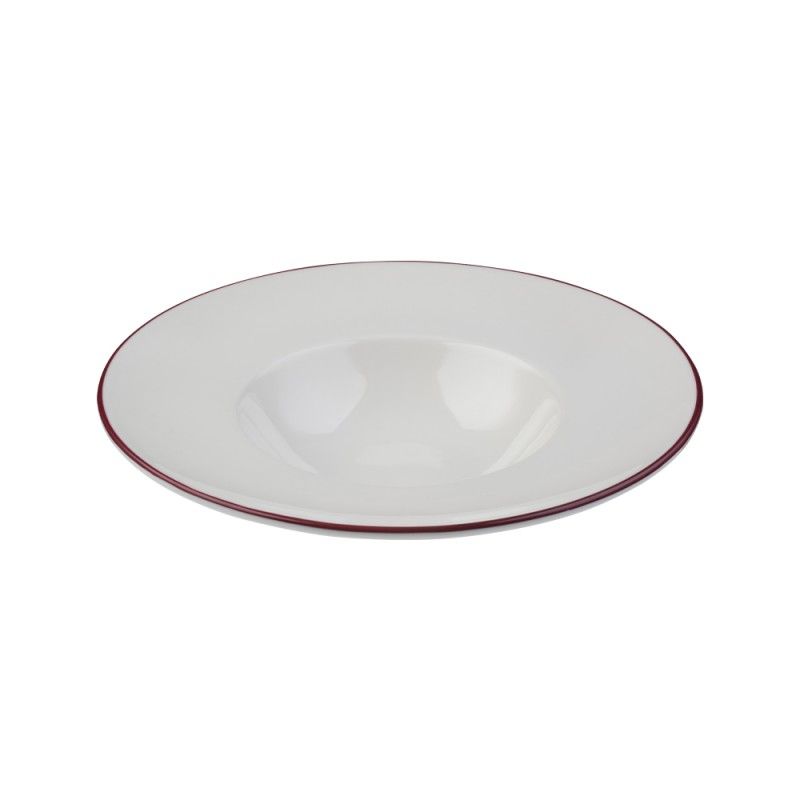 Глубокая фарфоровая тарелка 29см, объём 460мл — подходит для подачи пасты, салата и десерта. Тарелка белая с красной каймой, она выполнена из профессионального ресторанного фарфора от бренда ID Fine. Отличается прочностью и лёгко штабелируется. Практичное и стильное решение для кафе, ресторанов и гостиниц. Входит в базовую коллекцию Modest. Пожизненная гарантия от сколов.