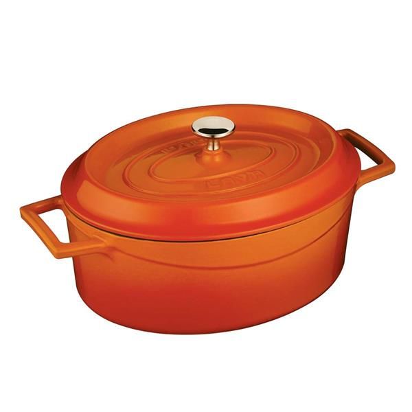 Кастрюля овальная 6,42л, 26x33 см, чугун, цвет оранжевый