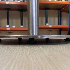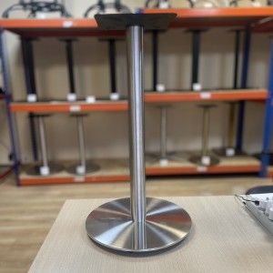 Круглое подстолье 4105 (бывшее название арт. 1105) из нержавеющей стали. Эти подстолья часто можно встретить на фудкортах торговых центров. Нержавеющая сталь имеет эффект "сатинирования", т.е. является не глянцевой на 100%, как зеркало, а слегка матовой. Зимой это дает преимущество - грязная обувь не оставляет столь заметные следы, как на хромированных подстольях. Посмотрите подстолье-компаньон для двойных столов: подстолье 4116