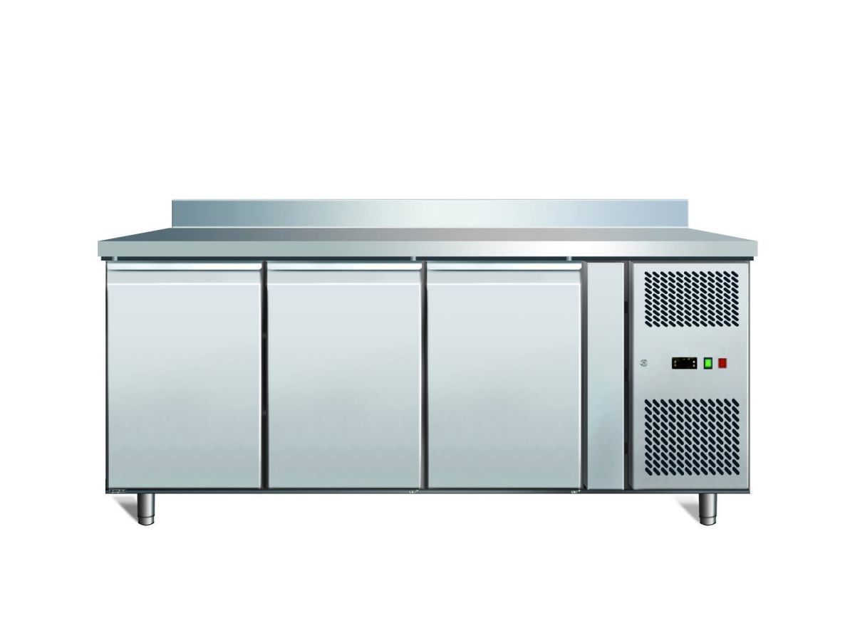 Основные характеристики Температурный режим от -2 до 8 °С Объем 450 л Рабочая поверхность нерж. сталь Количество дверей 3 Столешница с бортом Напряжение 220 В Мощность 0.29 кВт Ширина 1795 мм Глубина 700 мм Высота 950 мм Страна-производитель Китай Описание Холодильник-рабочий стол GASTRORAG GN 3200 TN ECX оборудован 3мя полками-решетками GN 1/1 с направляющими. Снаружи стол охлаждаемый изготовлен из нержавеющей стали 304/430, внутри - алюминий.
